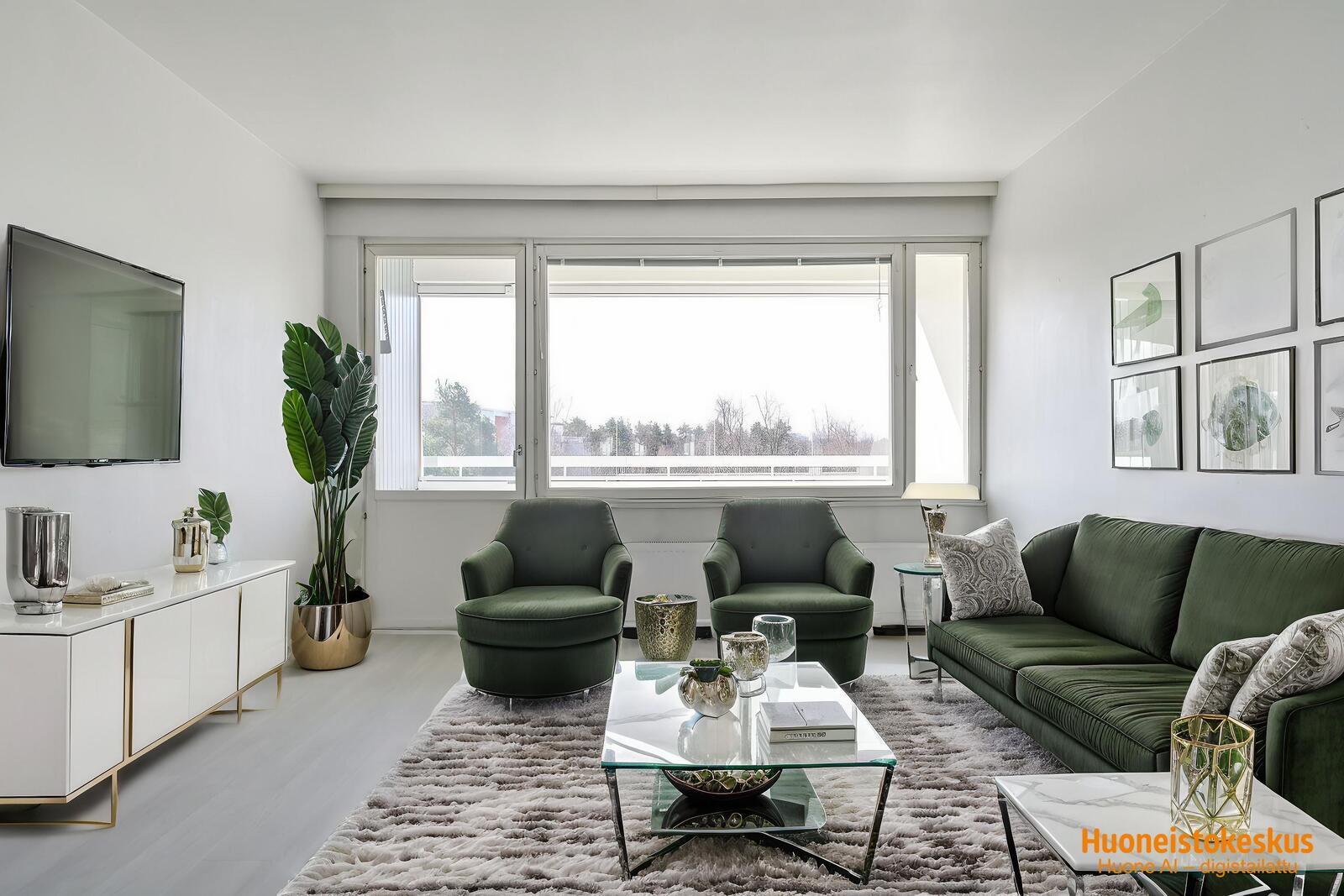 UPEASTI REMONTOITU, KAUNIIN VALOISA HUONEISTO YLIMMÄSSÄ KERROKSESSA – TILAVA LASITETTU PARVEKE JA HUIPPUSIJAINTI!