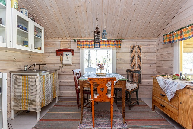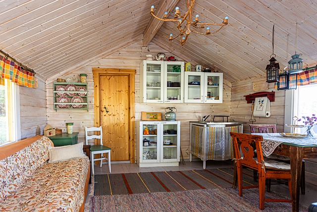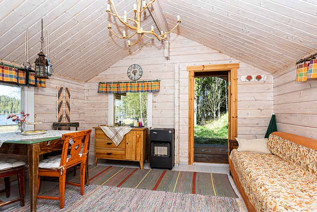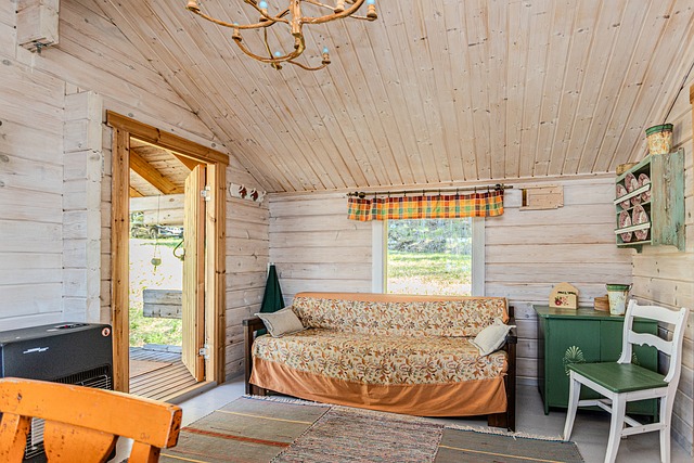 - Seinissä hirsi ja paneelipintaa, katossa paneeli.