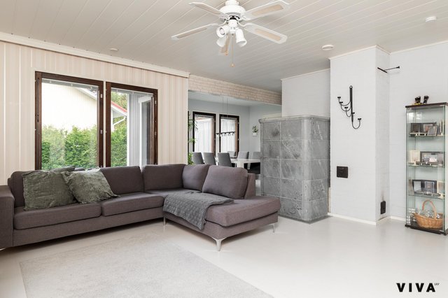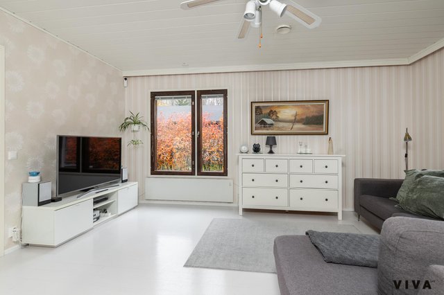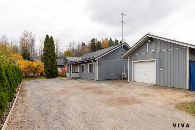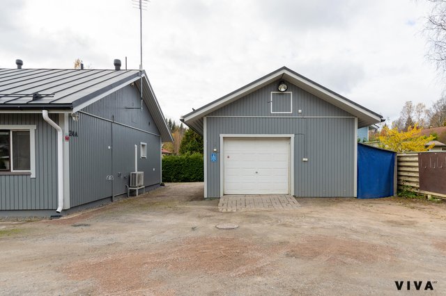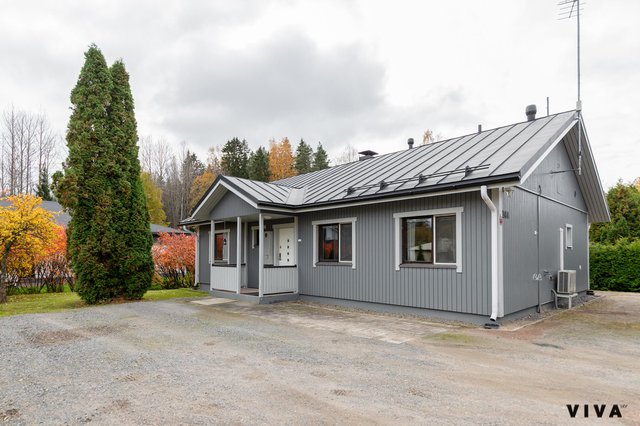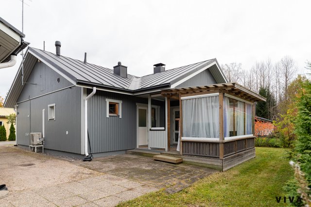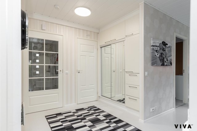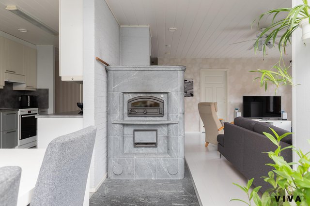 Asunnossa on kolme makuuhuonetta, olohuone, keittiö, kylpyhuone, sauna, kodinhoitohuone, lasitettu terassi, lämmin iso autotalli n.50m2. Asunto on käytännössä lähivuosina uusittu kokonaan ja tänne on myös tehty koneellinen ilmanvaihto lämmöntalteenotolla. Olohuoneessa on varaavatakka/ leivinuuni, joka on tasaamassa sähkönkulutusta talvipakkasilla, kuten myös ilmalämpöpumppu.