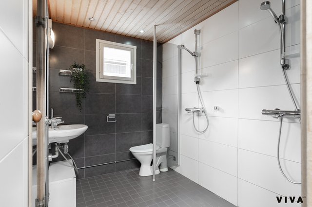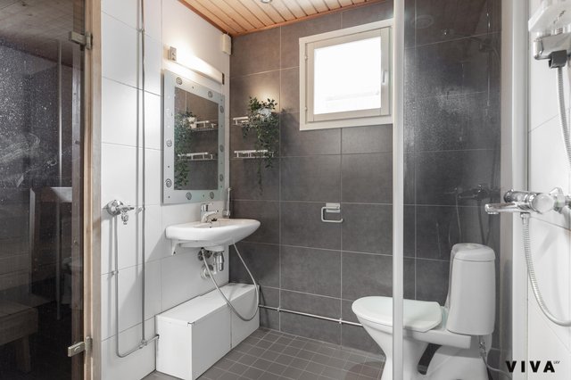 - WC-istuin, suihku, lattialämmitys, pesuallas, peili, ja bidee-suihku