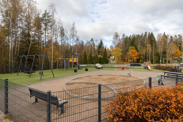 Linja-auto kulkee miltei talon edestä ja koulu sekä päiväkoti ovat lyhyen kävelymatkan päässä. Lähikauppa sijaitsee myös koulun läheisyydessä. Alueena Nikinmäki on suosittu lapsiperheiden asuinalueena.