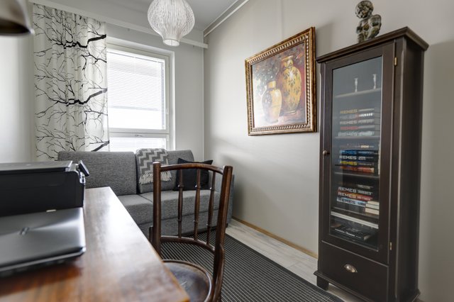 Huoneisto sijaitsee talon ylimmässä, kuudennessa kerroksessa, mikä takaa upeat näkymät etelä/länsi suuntaan ja runsaasti luonnonvaloa. Kulma huoneisto tarjoaa maisemat kattojen yli Pöyliövaaraan, kirkolle ja jopa joelle saakka! Tilavat kolme makuuhuonetta ja avara olohuone tarjoavat runsaasti tilaa perheelle tai vaikka työhuoneelle. Keittiössä on laadukkaat kodinkoneet, ja oma sauna tuo arkeen ripauksen luksusta. Tämän kodin jokainen yksityiskohta on tarkoin harkittu ja muodostaa täten upean ainutlaatuisen kokonaisuuden aivan Rovaniemen keskustan äärellä. Toista samanlaista kotia ei ole.