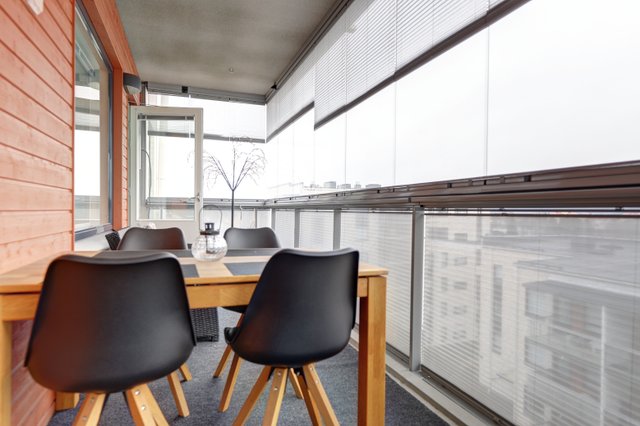 Asunnossa on hulppea lasitettu parveke, jossa voit nauttia auringon paisteesta. Taloyhtiössä on hyvät yhteiset tilat, kuten urheiluvälinevarasto ja kuivaushuone, ja asukkailla on mahdollisuus käyttää kuntoilutilaa huokeaan kuukausihintaan. Asuntokaupan yhteydessä myydään kaksi autohallipaikkaa, joissa toisessa on sähköauton latauspaikka.
