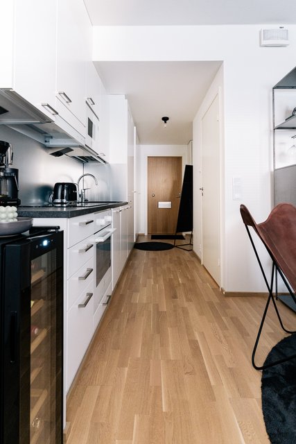 Huoneiston avara pohjaratkaisu ja laadukkaat materiaalit, luovat tyylikkään ja raikkaan ilmeen. Keittiössä on kaikki tarpeellinen: jääkaappipakastin, astianpesukone ja erillisuuni, ja kylpyhuone tilava. Lasitettu parveke tuo lisätilaa ja mahdollisuuden nauttia ulkoilmasta ympäri vuoden.