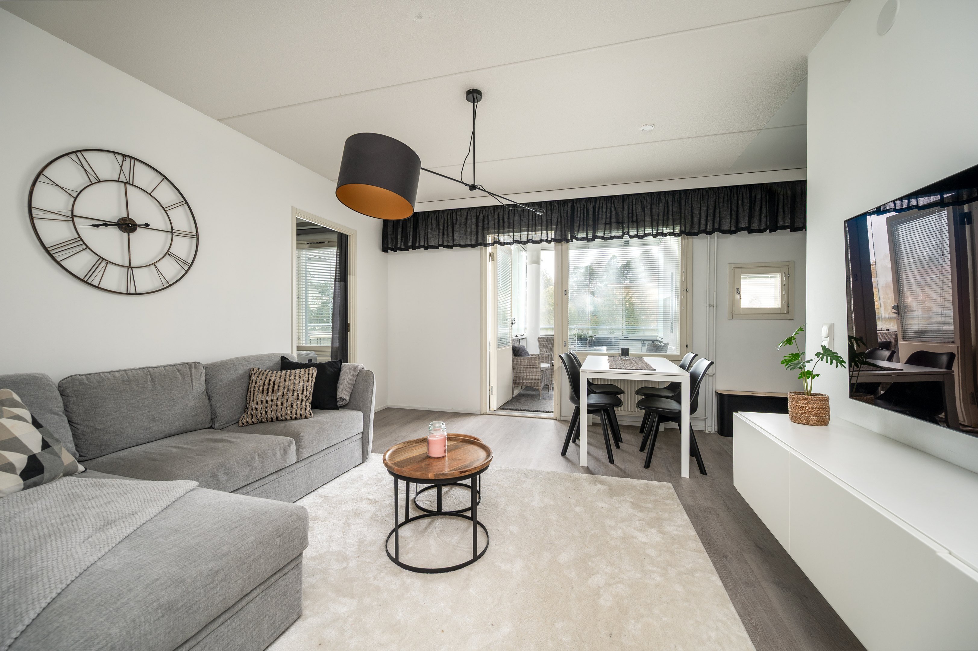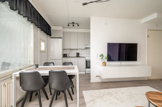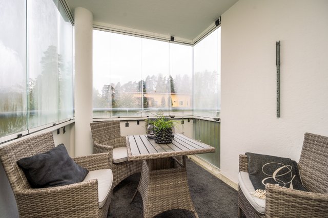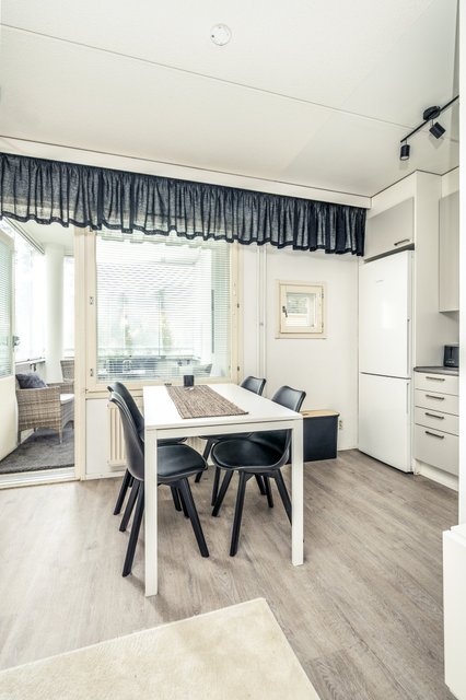 Asunto on hyvässä kunnossa ja sen tilava olohuone sekä moderni keittokomero tekevät arjesta sujuvaa. Kaapistojen lisäksi on käytännöllinen vaatehuone, joka tarjoaa runsaasti säilytystilaa. Kylpyhuoneessa on tilaa pesutornille. Taloyhtiössä on lisäksi sauna, urheiluvälinevarasto ja asuntokohtaiset irtaimistovarastot.