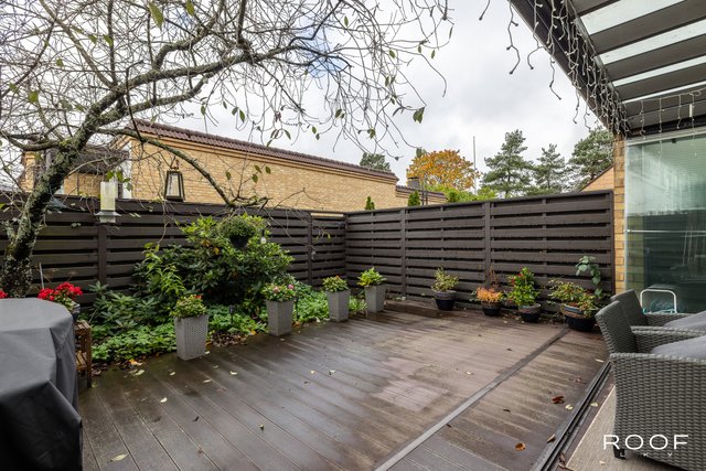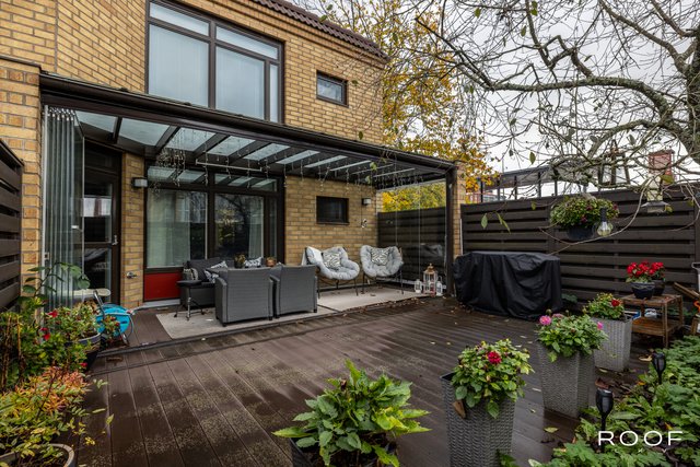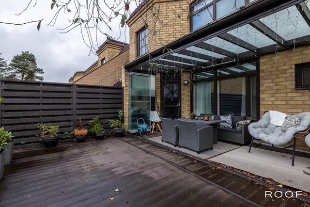Aidattu takapiha tarjoaa viihtyisän ulko-oleskelualueen, jossa on komposiittiterassi ja lasitettu osio – täydellinen paikka rentoutumiseen ympäri vuoden.