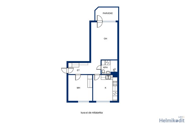 - Ei tarkistusmitattu. Pinta-alat saattavat tämän ikäisissä kohteissa (yhtiö rekisteröity ennen 01.01.1992) poiketa olennaisestikin asuinrakennusten nykyisten mittaustapojen ja standardien (SFS 5139) mukaan laskettavasta asuintilojen pinta-alasta. Pinta-ala voi siis olla edellä mainittua pienempi tai suurempi.