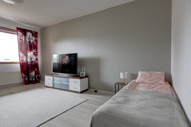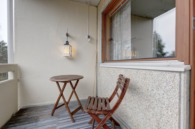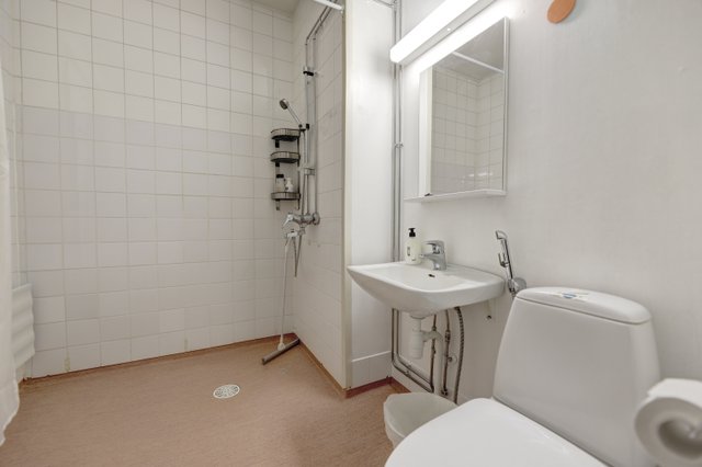 Asunnon pohjaratkaisu on toimiva ja pinnat ovat siistissä kunnossa. Kylpyhuoneen voit remontoida mieleiseksi, mutta jos remonttihaalarit ovat hukassa, se ajaa asiansa ilmankin.