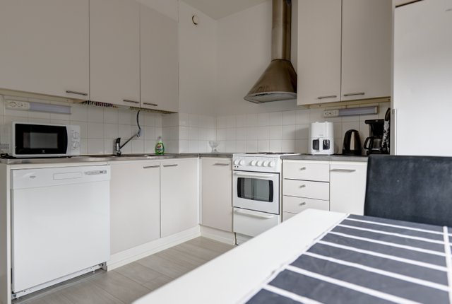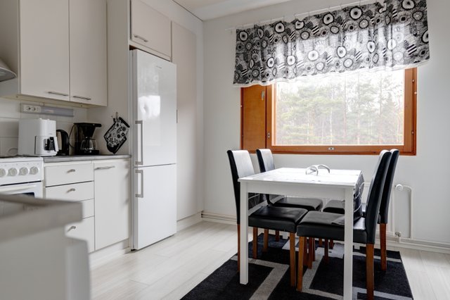 - Jääkaappipakastin, liesi, liesituuletin, ja astianpesukone
