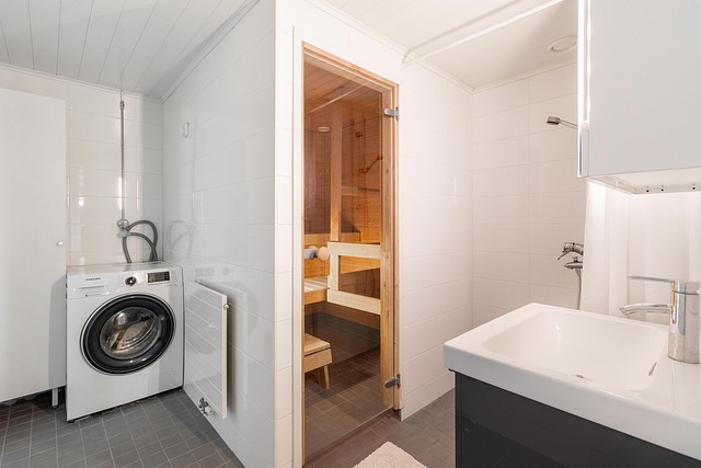 - Allaskaappi, pesukoneliitäntä, peilikaappi, ja suihku