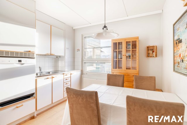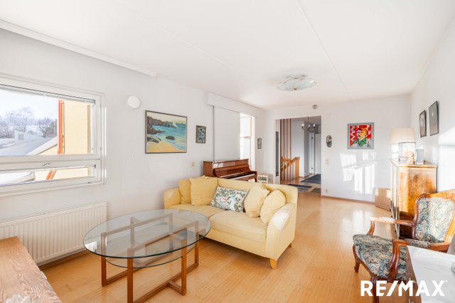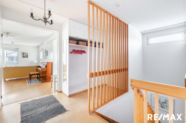 Ainutlaatuinen perheasunto hissitalon kahdessa ylimmässä kerroksessa Korppaanmäentie 30:ssä tarjoaa erinomaiset puitteet mukavaan arkeen tai juhlaan. Tämä 115 neliömetrin asunto sijaitsee rauhallisessa Pikku Huopalahdessa, joka tunnetaan vehreydestään ja hyvistä palveluistaan. Asunnosta avautuu avarat näkymät kolmeen eri suuntaan, mikä tuo runsaasti luonnonvaloa sisätiloihin.