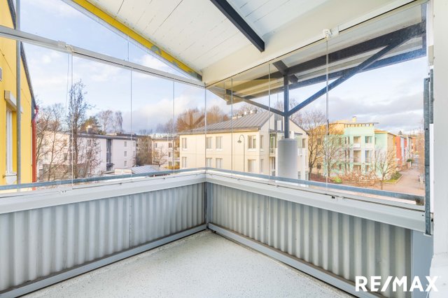 Asunnon pohjaratkaisu tarjoaa mahdollisuuden juuri oman näköiseen asumiseen. Ylemmässä kerroksessa on kaksi tilavaa makuuhuonetta, kylpyhuone ja vaatehuone sekä valoisa olohuone ja keittiö, jonne mahtuu ruokapöytä. Olohuoneesta on käynti lasitetulle parvekkeelle, josta avautuu avarat näkymät yli naapuritalojen kattojen. Alemmassa kerroksessa on kaksi huonetta, keittiövaraus, reilusti säilytystilaa ja kylpyhuone sekä lasitettu parveke. Tila sopii mainiosti esimerkiksi työhuoneeksi, harrastetilaksi tai vaikkapa perheen vanhempien omaksi makuuhuoneeksi kylpyhuoneineen.