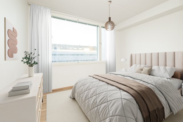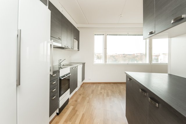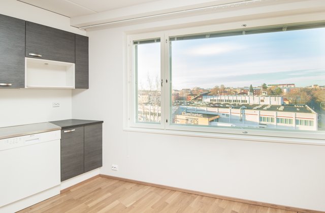 Neljännessä kerroksessa sijaitseva koti tarjoaa avarat näkymät ja runsaasti luonnonvaloa. Moderni keittiö on varustettu kaikilla tarvittavilla laitteilla, kuten astianpesukoneella ja keraamisella liedellä. Parvekkeelta voi nauttia aamukahvit rauhassa, sillä se on lasitettu ja tarjoaa mukavan lisätilan ympäri vuoden.