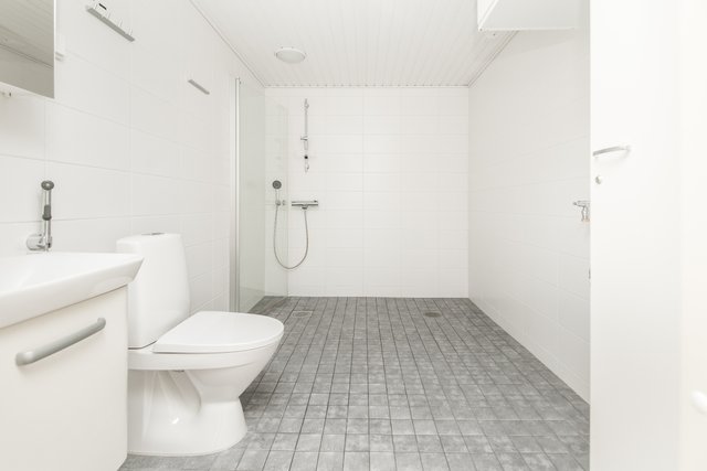 - WC-istuin, suihku, suihkuseinä, pesukoneliitäntä, lattialämmitys, peilikaappi, pesuallas, allaskaappi, ja bidee-suihku