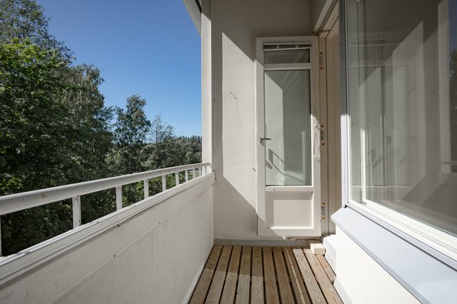 Asunnon olohuone on tilava, ja sieltä on käynti lasitetulle parvekkeelle, joka avautuu lounaaseen – täydellinen paikka nauttia iltapäivän auringosta. Keittiö on käytännöllinen ja varustettu kaikella tarpeellisella. Makuuhuoneessa on vaatekaapisto, ja kylpyhuone on remontoitu vuonna 2018 putkiremontin yhteydessä.