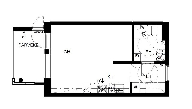 - Eteisen lattia: parketti. Eteisessä peililiukuovikaapisto.