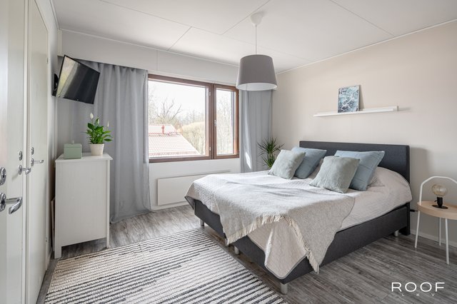 - Kaksi tilavaa makuuhuonetta, päämakuuhuoneen yhteydessä kaksi vaatehuonetta. SEINÄT: maalattu LATTIAT: laminaatti