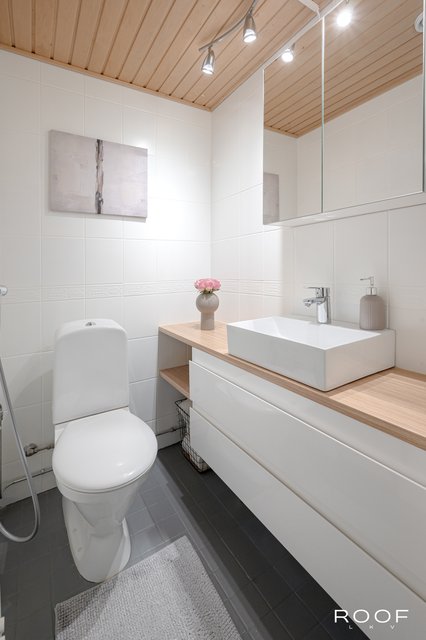 - VARUSTELU: Suihku, suihkunurkkaus, pesukoneliitäntä. SEINÄT: kaakeli LATTIA: laatta Uusittu 2023.