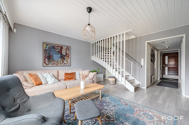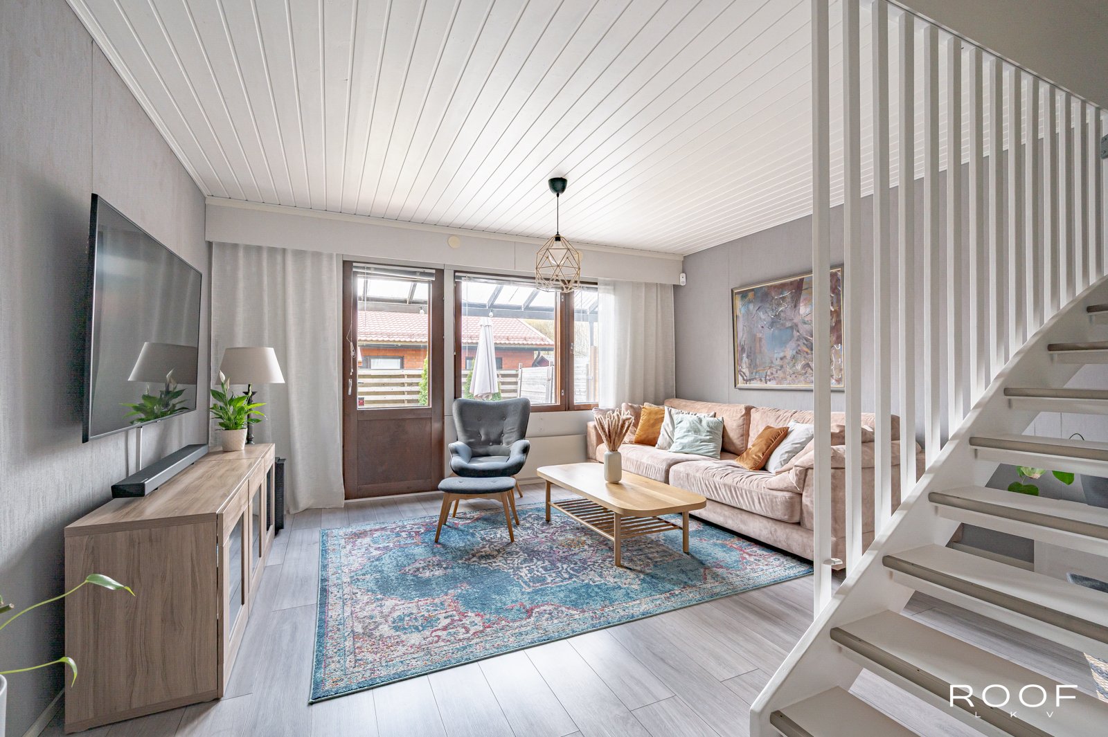 Tervetuloa tutustumaan tähän viihtyisään kaksitasoiseen rivitalokotiin, jossa asuminen on huoletonta ja kustannustehokasta!