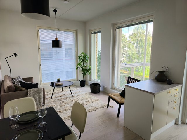 Vuonna 2023 valmistunut, hyvin suunniteltu 3H+KT tarjoaa paljon valoa ja tilan tuntua 42 m²:ssä. Asunto sijaitsee sopivasti hieman sivussa Myyrmäen kauppakeskuksen hälinästä, mutta täydellisen lähellä erinomaisia kulkuyhteyksiä.