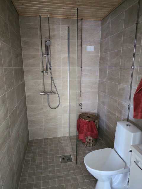 - WC-istuin, suihku, suihkuseinä, pesukoneliitäntä, lattialämmitys, peilikaappi, pesuallas, allaskaappi, ja bidee-suihku