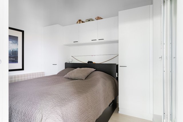 - Kaksi makuuhuonetta joissa korkea huonekorkeus ja hyvin kaappitilaa