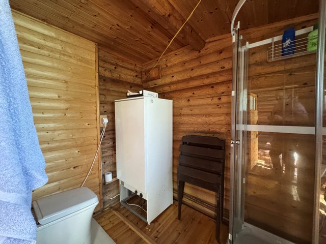 - polttava wc, lämminvesivaraaja, suihkukaappi, ja suihku