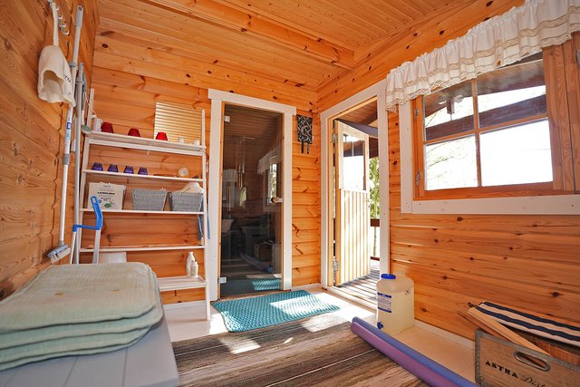 - Saunamökki n.13m², rak. 2014, höylähirsi 75mm, tilat: sauna+tupa Varasto/ pienempi, n.5m², kevytrakenteinen Varasto/ suurempi, n.12m², kevytrakenteinen Kesäkeittiö, jossa jääkaappi