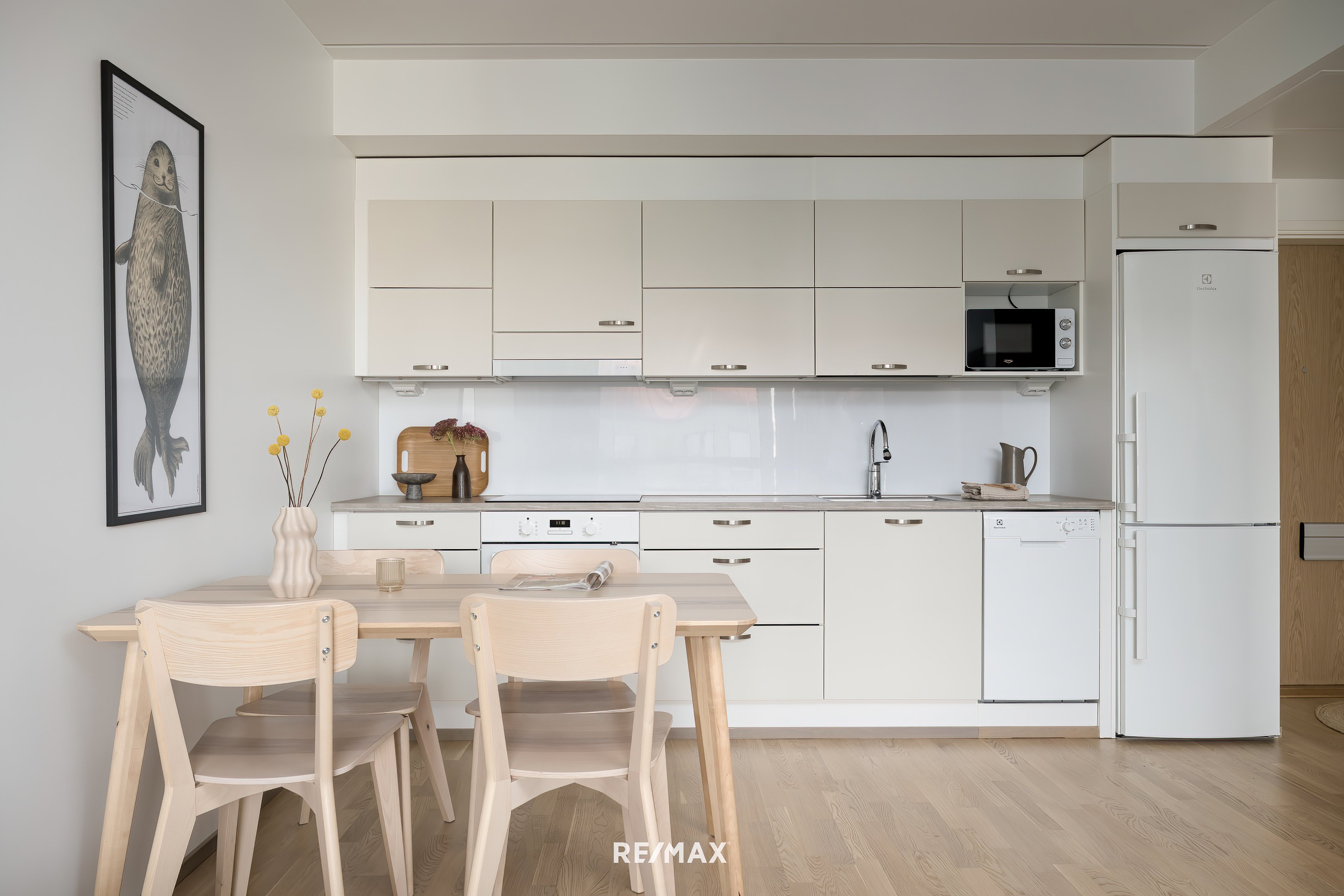 Vuonna 2021 valmistunut asunto on erinomaisessa kunnossa ja tarjoaa mukavuutta modernilla varustelullaan. Avoin keittiö ja olohuone luovat avaran ja valoisan tilan, jossa on helppo viihtyä. Parvekkeelta avautuvat upeat näkymät luovat rauhallisen paikan rentoutumiselle pitkän päivän jälkeen. Todella tyylikäs ja reilun kokoinen kylpyhuone kruunaa kokonaisuuden.