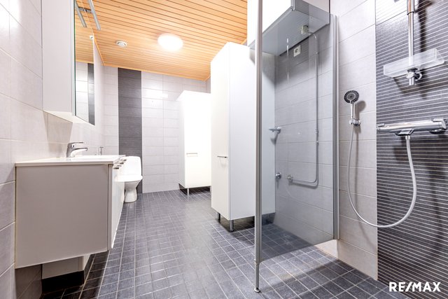 - Varustus: pesukoneliitäntä, lattialämmitys, wc-istuin, bide-suihku, peilikaappi, suihkuseinä, suihku, kuivauskaappi. Lattia: laatta Seinät: kaakeli