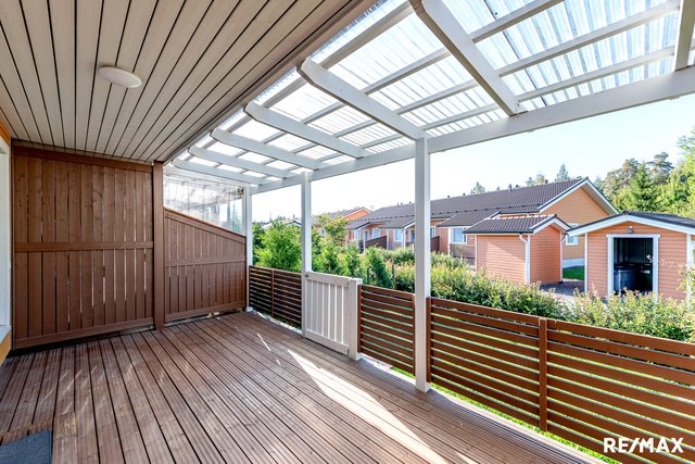 Mäntsälän keskustan kupeessa, Koskenrannan asuinalueella myynnissä vuonna 2015 valmistunut hyväkuntoinen rivitalokaksio. Hyvän pohjaratkaisun omaavassa kodissa on tilava makuuhuone vaatehuoneella sekä kaunis keittiö, joka ruokailutilan kautta avautuu valoisaan olohuoneeseen. Olohuoneesta on käynti takapihan katetulle terassille, joka antaa kivasti lisätilaa keväästä syksyyn. Mukavuutta asumiseen tuo oma sauna sekä kylpyhuoneen yhteydessä oleva kodinhoitotila.