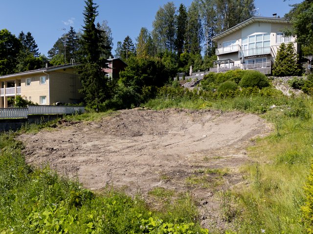 Rauhallisen tien varrella tarjolla 822 neliön rinnetontti. Maaperätutkimus on jo tehty; tutkimus suosittaa maanvaraista perustusta, ja asuinrakennuksen voi (tietyin edellytyksin) sijoittaa joko yhteen tai kahteen tasoon. Vehreät, avarat näkymät ovat vertaansa vailla!