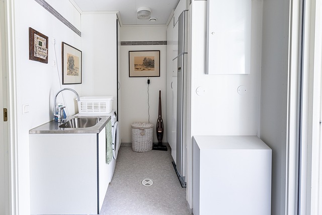 - Kodinhoitohuoneessa lattia muovimattoa, maalatut seinät, pesukoneliitäntä, kaapisto, keskuspölynimuri, ilmavesilämpöpumppu