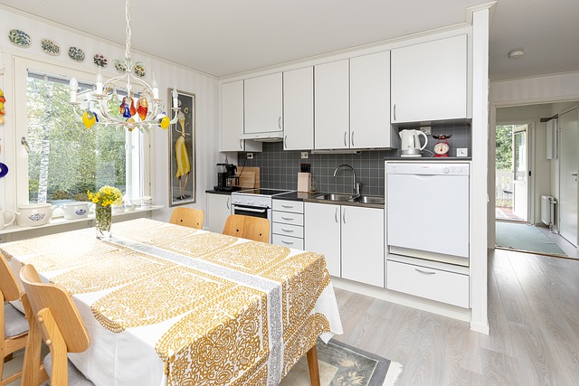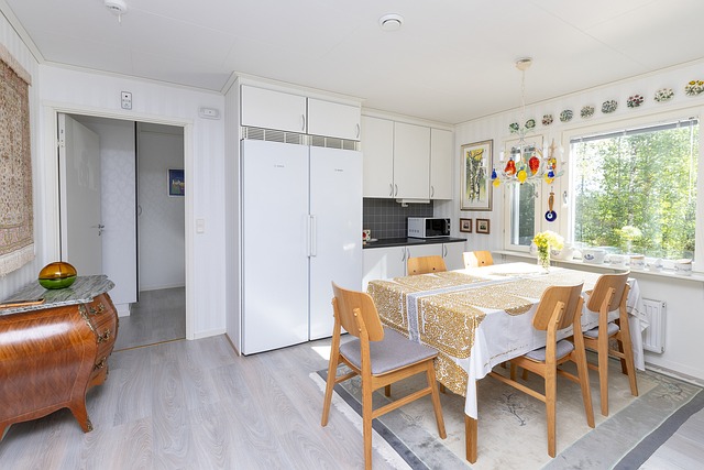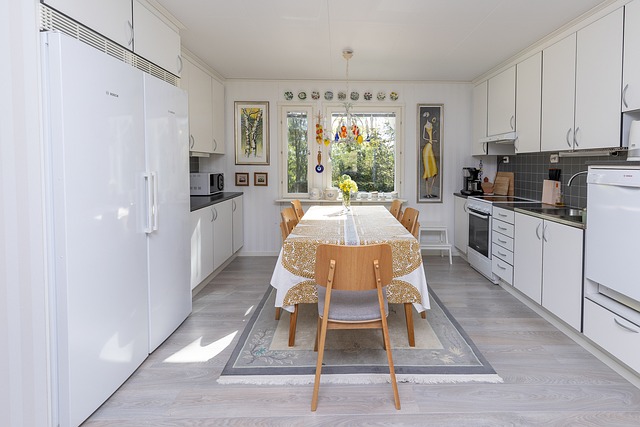 - Keittiössä on lattia laminaattia seinät tapetoidut. Valkoinen kaapisto, jääkaappi 1/1, pakastin 1/1, astianpesukone, keraaminen liesi, liesituuletin, mikroaaltouuni