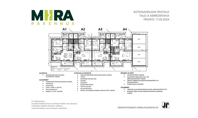 - perustukset ja huoneistojen väliset seinät betonia puurunkoiset ulkoseinät lautaverhoilulla. muu