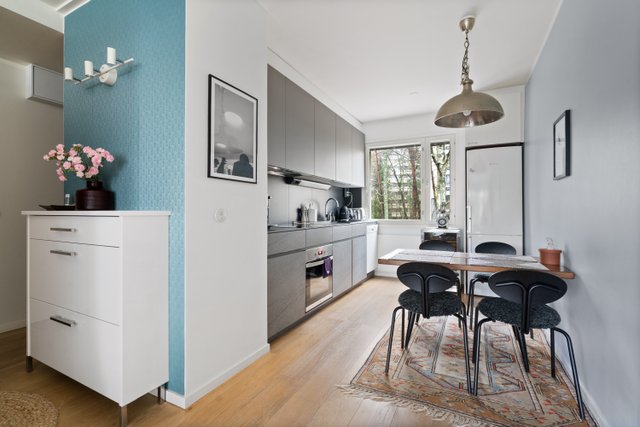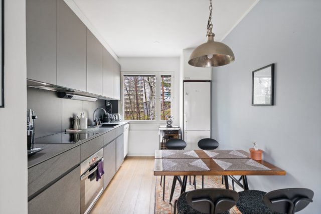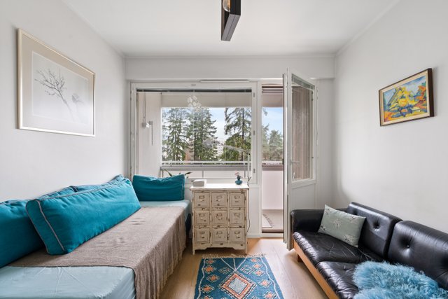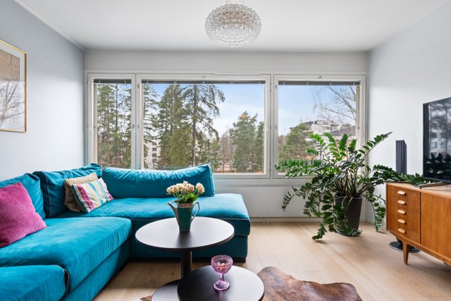 Tämä upea kolmio sijaitsee loistavalla paikalla, vain kävelymatkan päässä metrolta. Asunto on remontoitu tyylikkäästi 2010-luvulla. Tuolloin uusittiin myös keittiö ja asennettiin tyylikäs parkettilattia. Ylimmän kerroksen sijainti tarjoaa rauhaa ja miellyttävät näkymät ikkunoista.