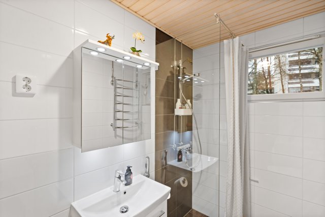 - Pesukoneliitäntä, suihku, bidee-suihku, allaskaappi, peilikaappi, ja pyyhekuivain