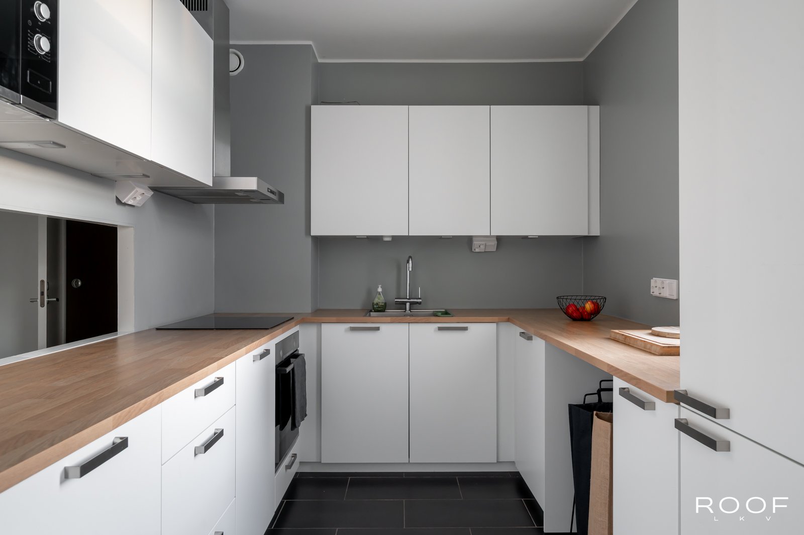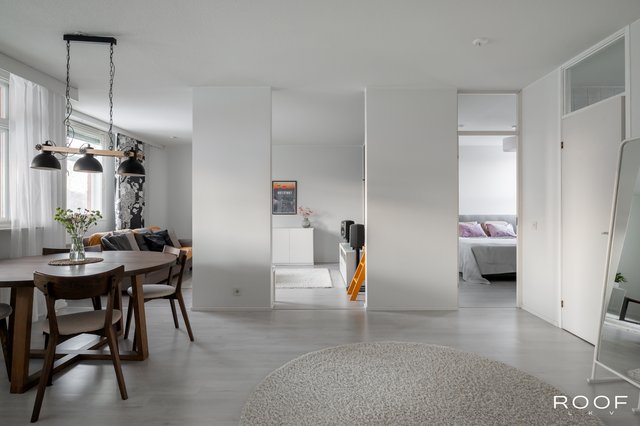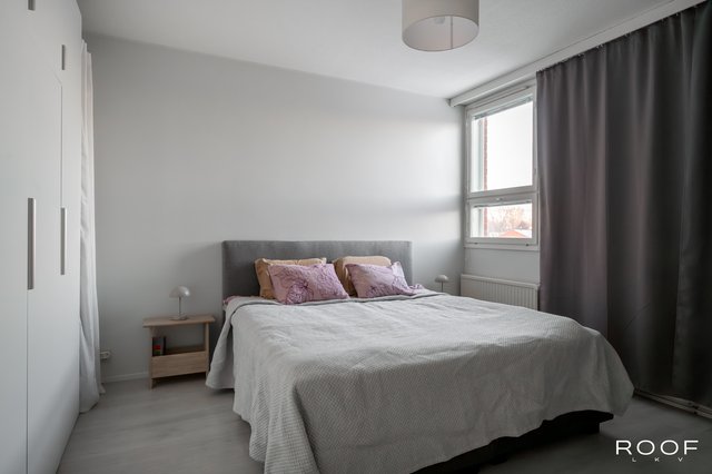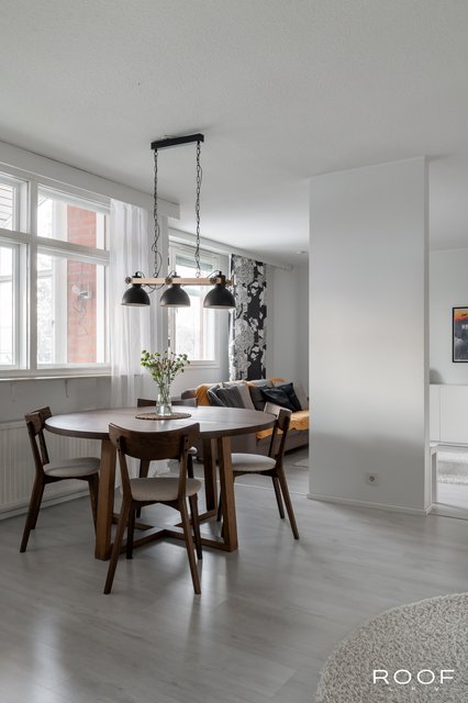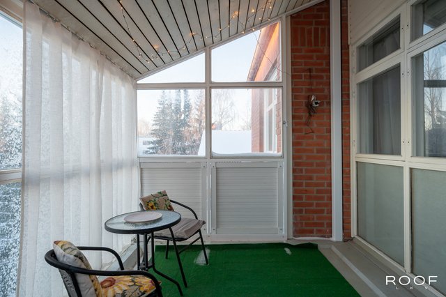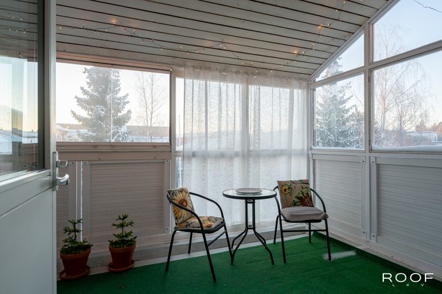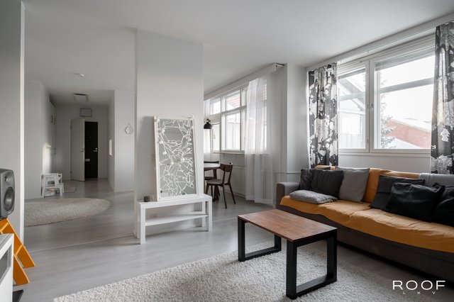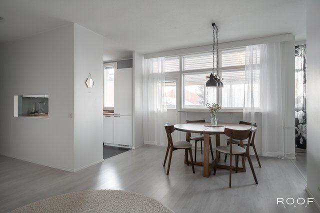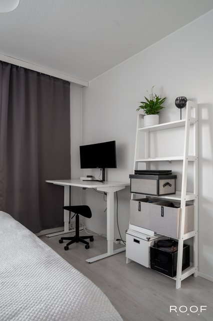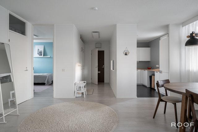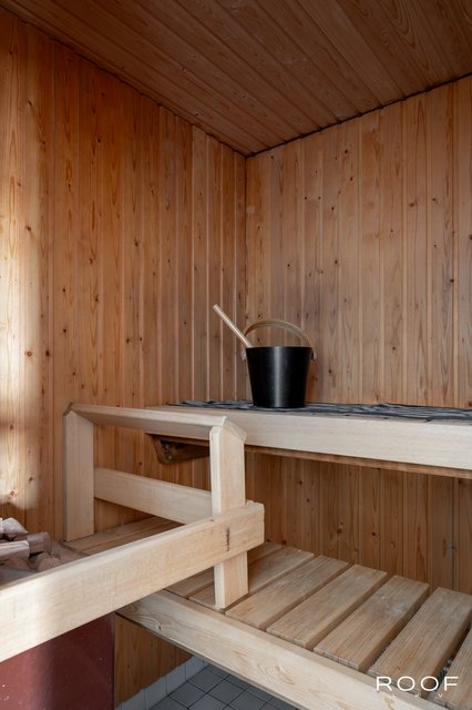 Keittiö on varustettu nykyaikaisin kodinkonein, kuten induktioliedellä ja integroidulla mikroaaltouunilla. Laatoitettu kylpyhuone ja oma sauna tarjoavat arjen luksusta, ja parveke tuo lisätilaa rentoutumiseen. Laminaattilattiat ja maalatut seinät luovat raikkaan ja modernin ilmeen.