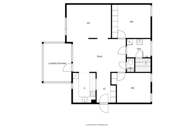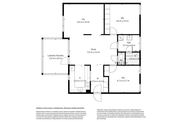- Yhtiöjärjestyksen mukainen, Isännöitsijäntodistuksen mukainen, (Pinta-ala ei ole tarkistusmitattu ja todellinen pinta-ala voi olla suurempi tai pienempi, kuin ilmoitettu)