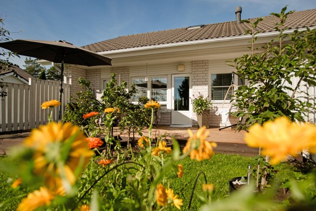 Kylpyhuoneessa on lattialämmitys ja ikkunallisessa saunassa pääsee rentoutumaan ja palautumaan jättäen stressin taakseen. Terassilla voit nauttia puhtaasta ulkoilmasta ja rauhallisesta ympäristöstä hallitsemallasi aidatulla puutarha-alueella joka avautuu lounaaseen. Puutarhasta löytyy kirsikka- ja päärynäpuut, musta- ja punaherukkaa sekä valmiit kasvatuslaatikot omille yrteille ja vihanneksille.