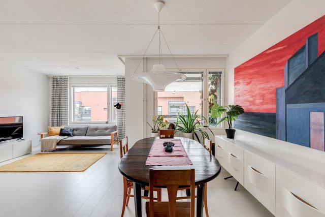Arabianranta on haluttu ja arvostettu asuinalue, joka tunnetaan erinomaisista liikenneyhteyksistä ja monipuolisista palveluista. Ratikkapysäkki sijaitsee lähes taloyhtiön vieressä ja ratikalla pääsee sujuvasti aivan Helsingin keskustaan. Lähialueelta löytyvät niin päiväkodit, koulut kuin kivat kahvilat ja ravintolatkin. Kauppakeskus Arabia on muutaman minuutin kävelymatkan päässä ja lähikauppa Lidl lähes vieressä. Merelliset ulkoilureitit löytyvät myös ihan lähistöltä.