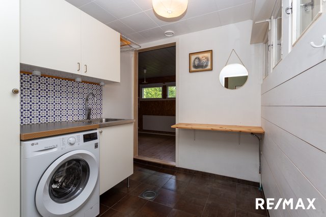 Saunan puukiuas tarjoaa aidon suomalaisen löylyelämyksen, ja kylpyhuoneen lattialämmitys tuo lisämukavuutta jokaiseen päivään. Käytännöllinen kodinhoitohuone helpottaa arkea, ja monipuolinen lämmitysjärjestelmä – maalämpö, sähkö ja puu – tekee asumisesta sekä joustavaa että energiatehokasta.