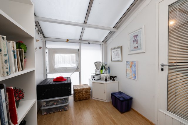 Hyvän pohjaratkaisun ansioista ei asunnossa ole hukkaneliöitä, keittiö avautuu luontevasti ruokailutilan kautta valoisaan olohuoneeseen, josta käynti huoneiston omalle terassi piha-alueelle. Oma sauna tarjoaa rentouttavia hetkiä arjen kiireiden keskellä. Tämän asunnon erikoisuutena on n. 10 m² viherhuone, joka tuo lisätilaa ja mahdollisuuksia harrastuksille tai rentoutumiselle. Säilytystilaa on hyvin ja huoneistokohtainen n. 6m² lämmin varasto sijaitsee kätevästi huoneiston sisäänkäynnin vieressä. Kahden makuuhuoneen ikkunoista osittainen merinäköala.