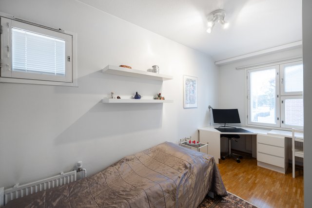 - Makuuhuoneiden seinät maalattu, lattiat parkettia.