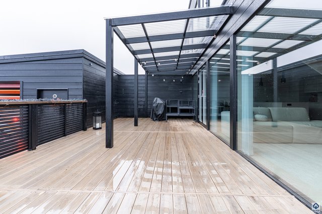 - Terassi kiertää koko asunnon, terassilla poreamme.