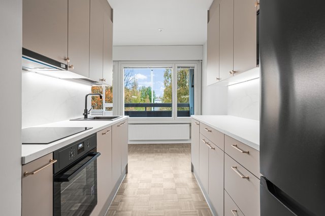- Jääkaappipakastin (Uusi), erillisuuni (Uusi), liesi (Uusi), liesituuletin (Uusi), mikroaaltouuni (Uusi integroitu), ja astianpesukone (Uusi)