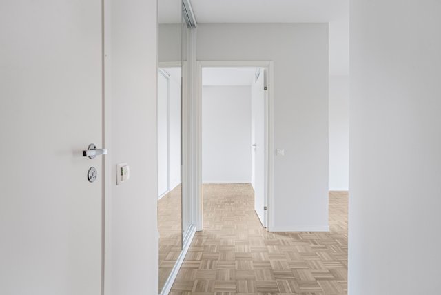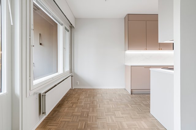 Uudenveroinen kaksio hissitalon 4. kerroksessa.