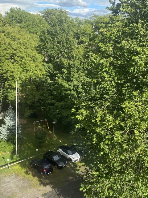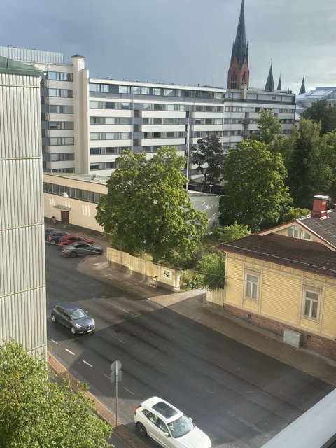 Isot ikkunat tuovat runsaasti luonnonvaloa sekä päähuoneeseen että keittiöön. Ylin kerros, vehreät ja rauhalliset näkymät taloyhtiön sisäpihalle luovat ihastuttavan vastapainon kaupungin sykkeelle. Lisäksi päähuoneen ikkunasta aukeaa näkymä Mikaelin kirkolle. Kodin tunnelma erottuu edukseen, pelkästään jo kerrostalon käytäviltä alkaen on aistittavissa lämmin retrohenki, jota ei uusista taloista löydy.