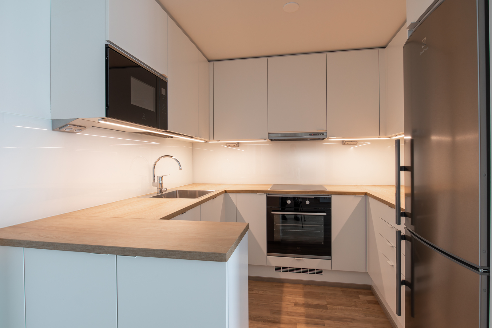 - Jääkaappipakastin, erillisuuni, liesituuletin, ja astianpesukone
