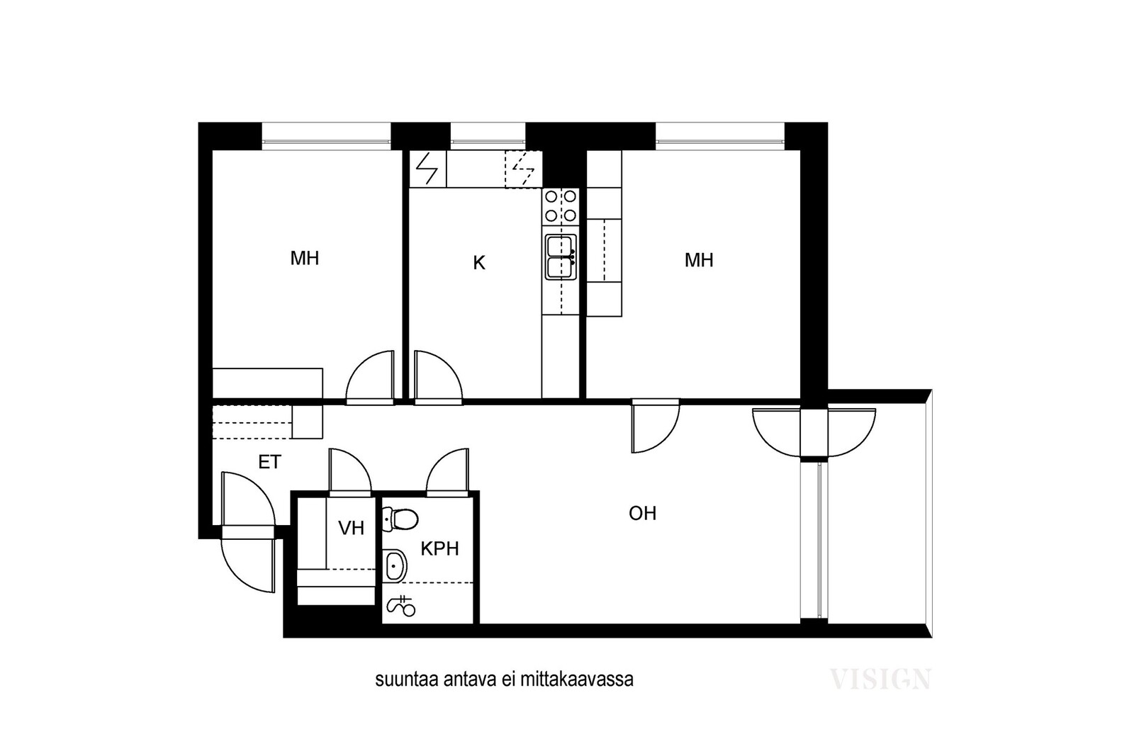 - Mainittu pinta-ala saattaa tämän ikäisessä kohteessa poiketa olennaisesti nykyisten standardien mukaan laskettavasta asuinpinta-alasta. Todellinen asuinpinta-ala voi olla yhtiöjärjestyksessä, isännöitsijäntodistuksessa ja esitteessä mainittua pienempi tai suurempi.